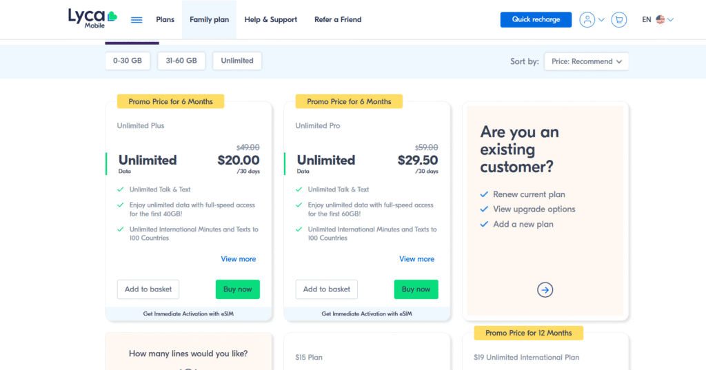 - SIM Activation Online – easy sign-up and plan switching via Lycamobile’s website or app.